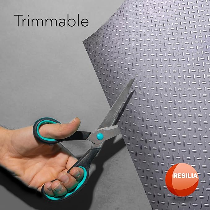 RESILIA Heavy Duty Garage Floor Runner & Protector Mat - Slip Resistant Diamond Plate PVC Mats - Water, Spill, & Stain Resistant, Silver (4 feet x 20 feet)