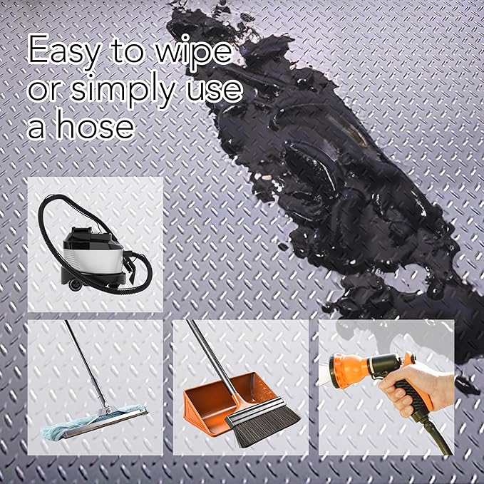 - THE DAMAGE-DEFYING SOLUTION TO SPILLS & STAINS: Safeguard your indoor/outdoor flooring from stubborn grease, rust, oil spills, tire skids, leaks, and more with our durable vinyl mat, designed to deliver unbeatable protection against costly damage
