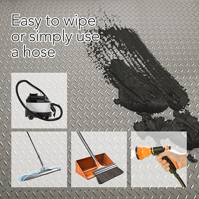 - THE DAMAGE-DEFYING SOLUTION TO SPILLS & STAINS: Safeguard your indoor/outdoor flooring from stubborn grease, rust, oil spills, tire skids, leaks, and more with our durable vinyl mat, designed to deliver unbeatable protection against costly damage