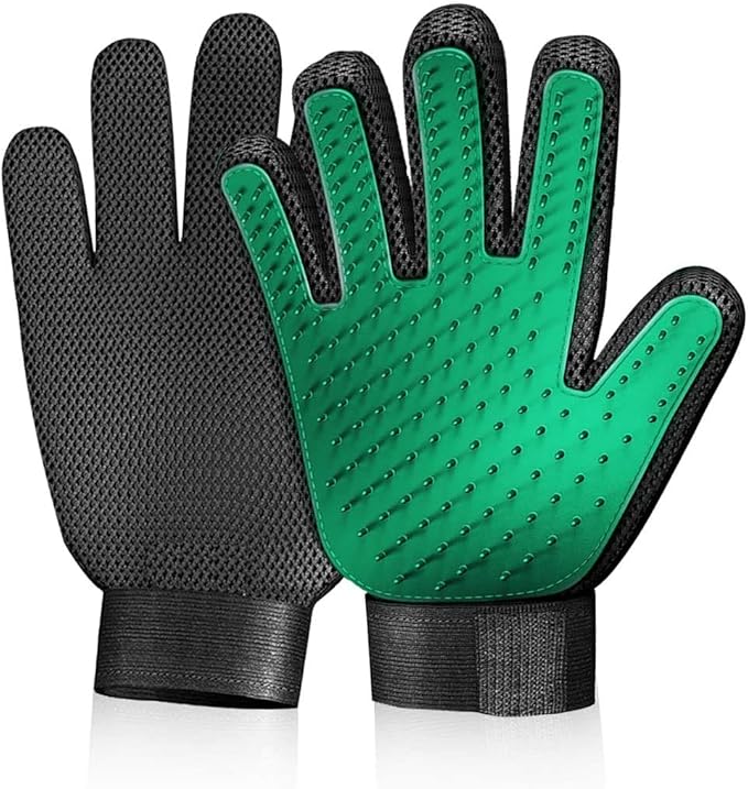 - [Packaging includes]: 2x Green pet grooming gloves (1 left-hand and 1 right-hand;)