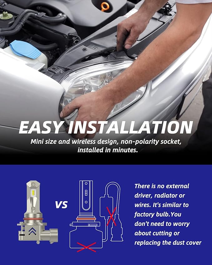- Mini size as halogen bulbs, plug and play. Easy to install, just need to remove stock light bulb, then directly indsert the bulb into to corresponding holes and clockwise rotate and screw it up