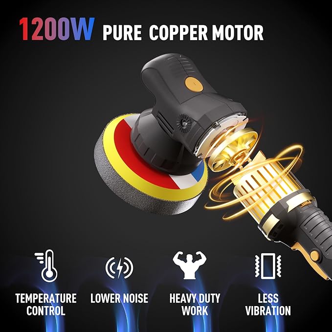 - 🍀UNLEASH THE POWERHOUSE: car buffer polisher boasts a mighty 1200W high-power pure copper motor.With its efficient temperature control system, this machine remains cool even during extended work sessions, ensuring uninterrupted productivity.
