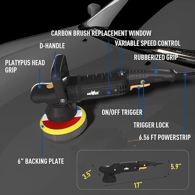 - 🍀EFFORTLESS MANEUVERABILITY: Weighing a mere 7 lbs, orbital polisher offers exceptional portability. The added convenience of the included D-handle. This versatile tool is the ideal choice for effortlessly polishing automobiles, boats, furniture, ceramics, wood, and more.
