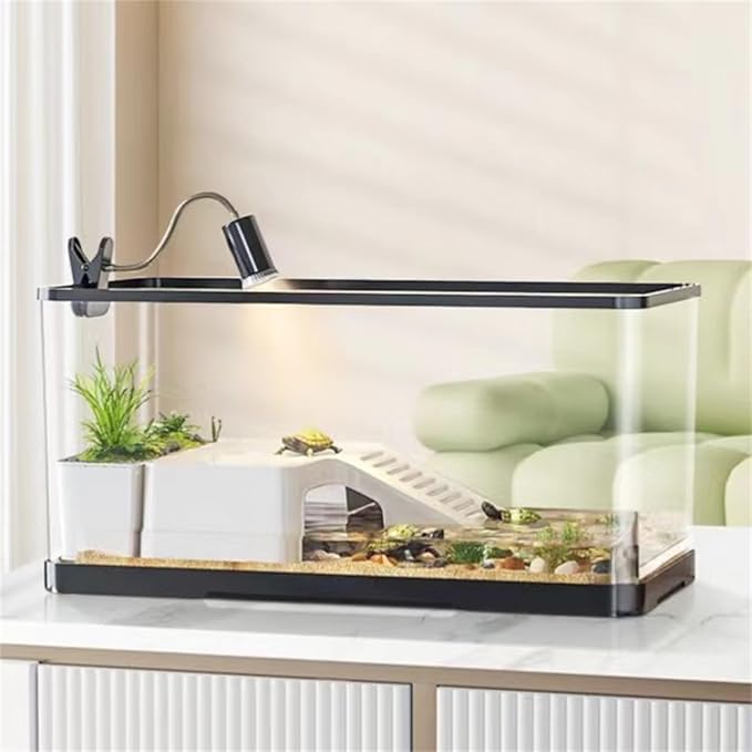 - 【Complete Small Reptile Starter Kit】Includes: 1* tank +1 lid, 1* light +1* UVA/UVB light bulb, 1* filter, 1* sundeck +1* soil culture box, 3* decorative plants +1* stone pack +1*filter ball pack; Including everything you need