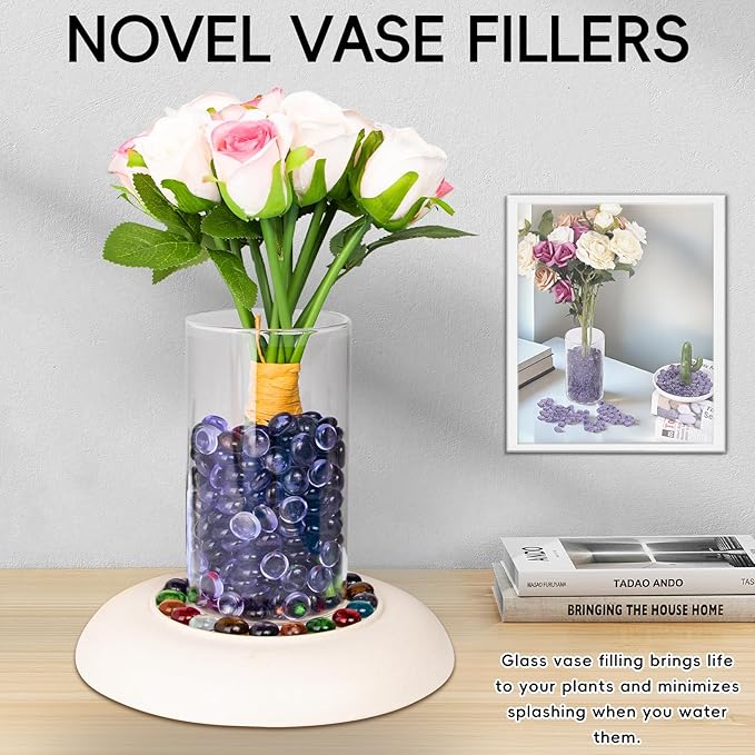 - 🌸Widely Applied - These flat marbles can serve as vase fillers for centerpieces,decorative accents for pool or landscape bottoms, home décor, photography backdrops, gardens, weddings and parties, fire pit glass rocks, as well as glass beads for crafts.