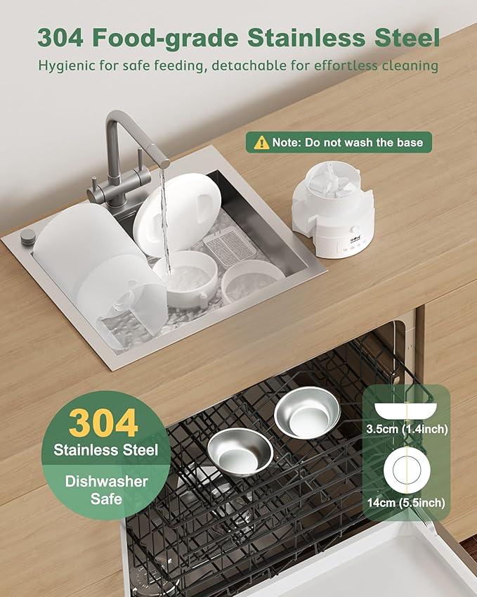 - š¾ Safe & Hygienic Stainless Steel Bowl Cat Food Dispenser: Built with 304 grade stainless steel bowl for safe, hygienic feeding. this cat food dispenser keeps meals hygienic and easy to clean. The enclosed design with desiccant bag helps preserve kibble freshness and crispness over time, ensuring every meal is clean and nutritious.