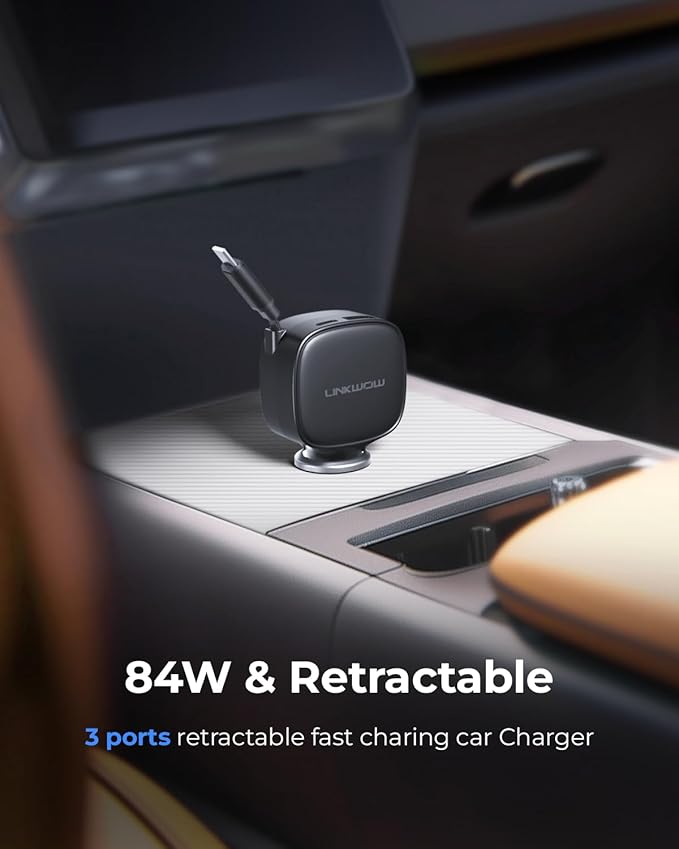 - 【Must Have Car Charger for Family Road Trips】 Triple-Device Fast Charging: Powers action cameras via retractable Type-C cable while dual USB ports simultaneously charge parents' phones and kids' tablets.Smart Adaptive Charging: Auto-detects Apple/Samsung devices and intelligently selects optimal PD/QC fast charging protocol.Universal Device Compatibility: Fully supports Type-C car fast charging and iPhone car flash charging, compatible with laptops, smartphones and tablets.Triple-Layer Safety Protection: Over-voltage, over-current and short-circuit protection keeps devices safe even with children around.Compact Space-Saving Design: Ultra-slim body won't obstruct gear shifts or cup holders