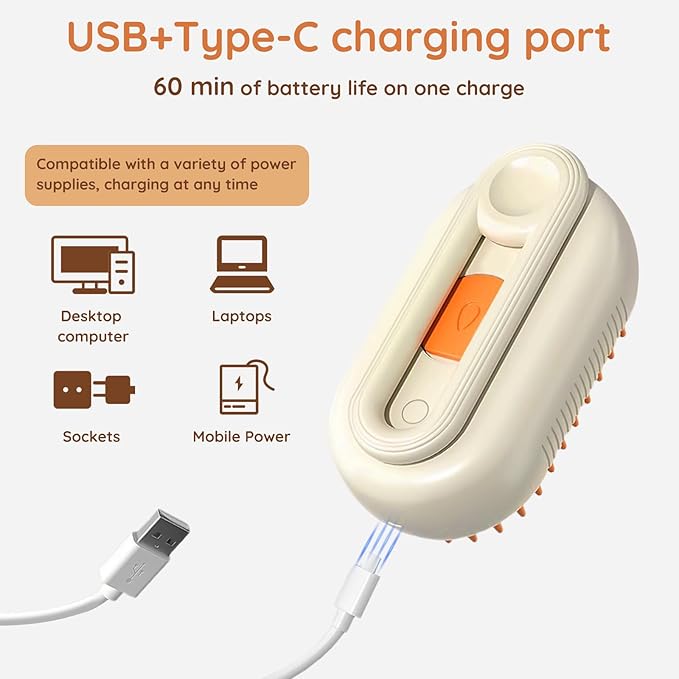 - [Multi-functional all-in-one, total care] This pet spray brush is not just a traditional Cat Brush; it incorporates innovative features such as steam cleaning, soothing massages, and an electric mist to prevent flyaways. It effortlessly removes dirt, grime, and loose hair while providing a comfortable massage experience, leaving fur smooth and shiny.